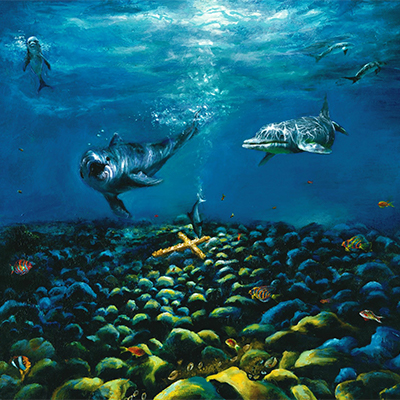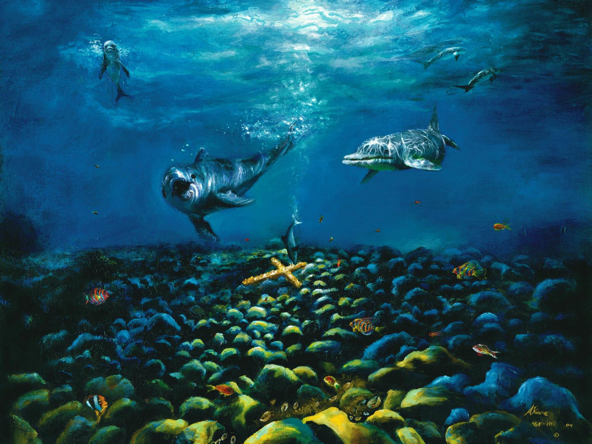 Five groups of dolphins represent five groups of beings responding differently to time. One group swims away from it.  The second group looks for time in the wrong way. The third group distracts others from finding the secrets of time.  In the end, the code of time is discovered by just a few—by the most persistent and compassionate.