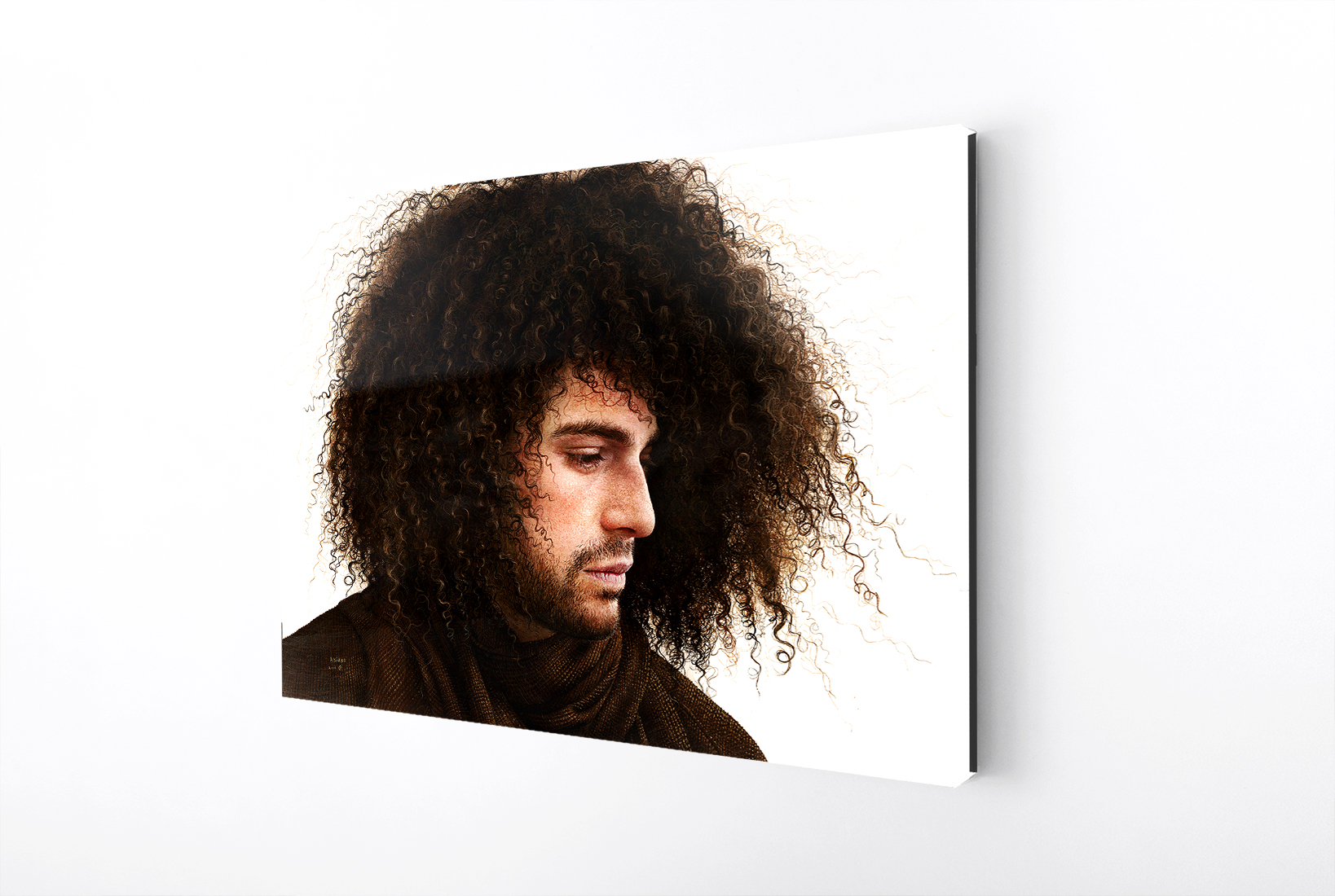 At first, she noticed his wild hair. Then almost immediately she caught sight of her future painting: the freedom of a multi-racial spirit blowing in the wind. It would be a breeze, she thought to herself, assessing the easiness of her future project. But little did she suspect it would take her almost a year conceptualizing and working in three continents and morphing dozens of models to discover the real personality of the portrait.