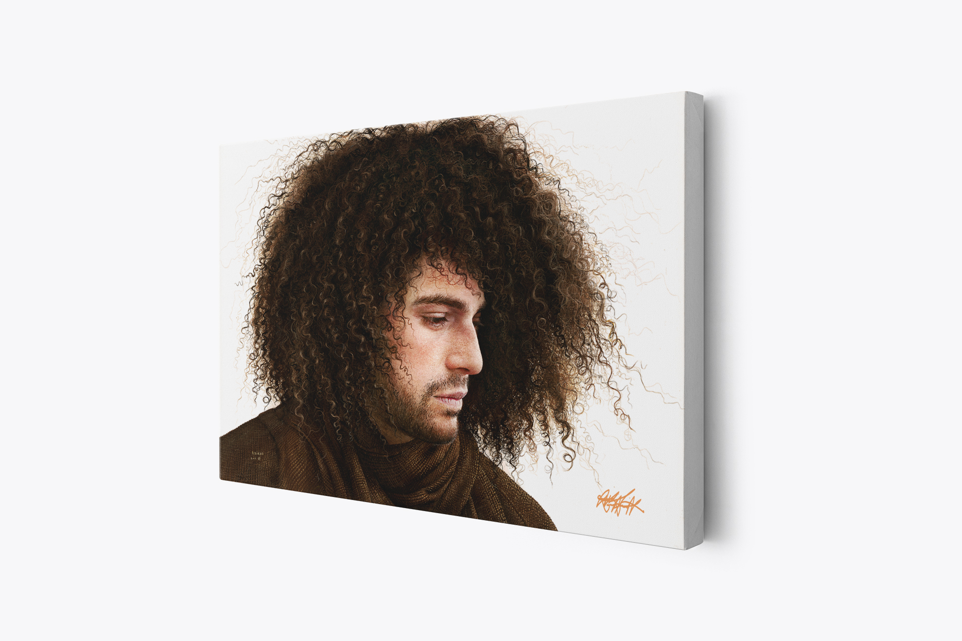 At first, she noticed his wild hair. Then almost immediately she caught sight of her future painting: the freedom of a multi-racial spirit blowing in the wind. It would be a breeze, she thought to herself, assessing the easiness of her future project. But little did she suspect it would take her almost a year conceptualizing and working in three continents and morphing dozens of models to discover the real personality of the portrait.