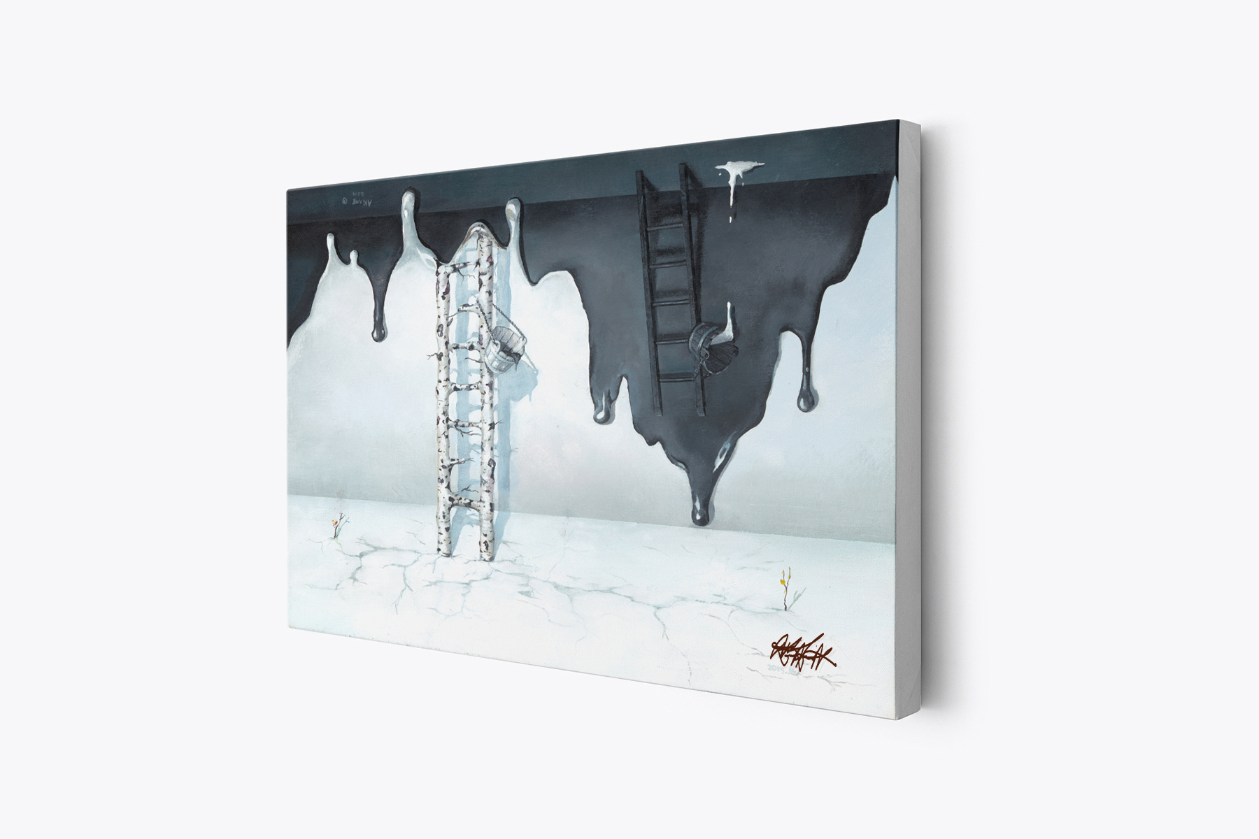 A white and black room was once someone’s home. Years passed, and the nature took a new course: a birch tree grew into a ladder, connecting the two opposite worlds constantly taking over each other.
